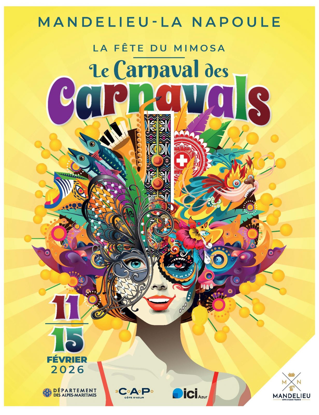 En 2026, la Fête du Mimosa se déroulera du 11 au 15 février et aura pour thème "Le Carnaval des Carnavals !"