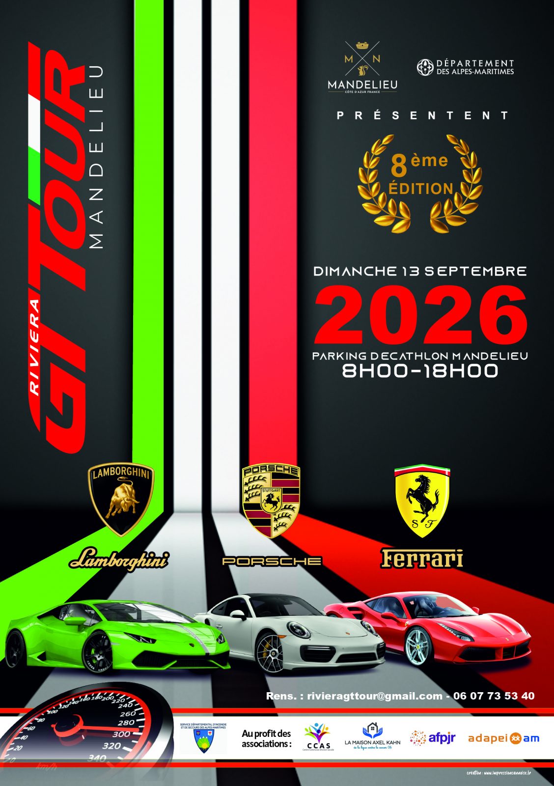 L’évènement revient le 13 septembre sur le parking Decathlon pour des baptêmes au profit d’associations caritatives. L’association Riviera GT Tour promet une belle journée remplie d’émotions autour d’un grand nombre de véhicules de prestige.